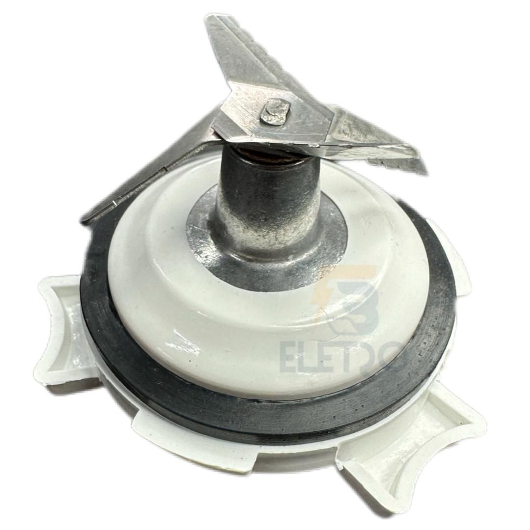 Peça também conhecida como : Faca do Liquidificador, Acoplamento do Copo, Faca do Copo, Acoplamento Faca do Copo, Lâmina do Copo, Faca Removível do Liquidificador, Borracha com Faca, Acoplamento com Borracha